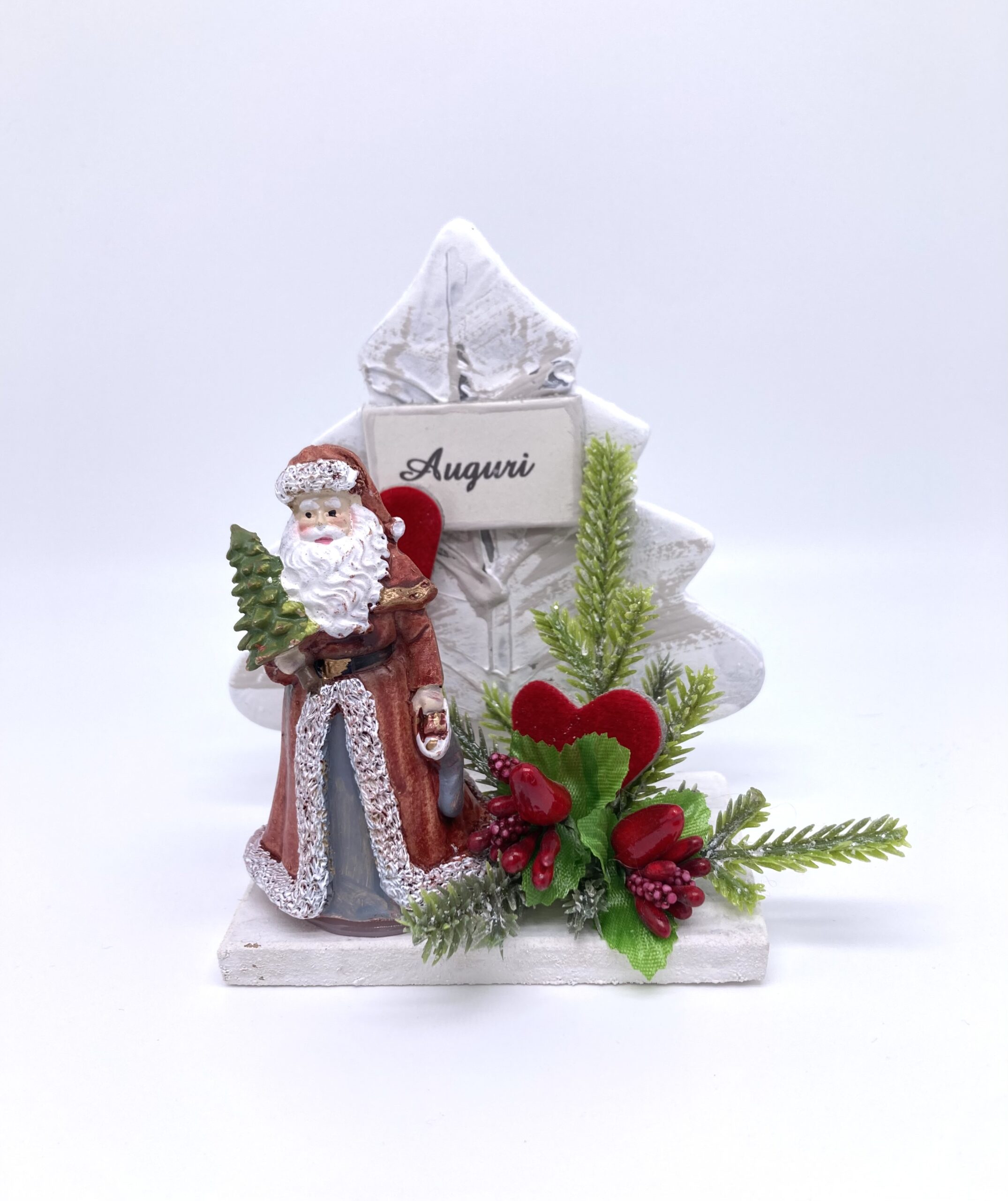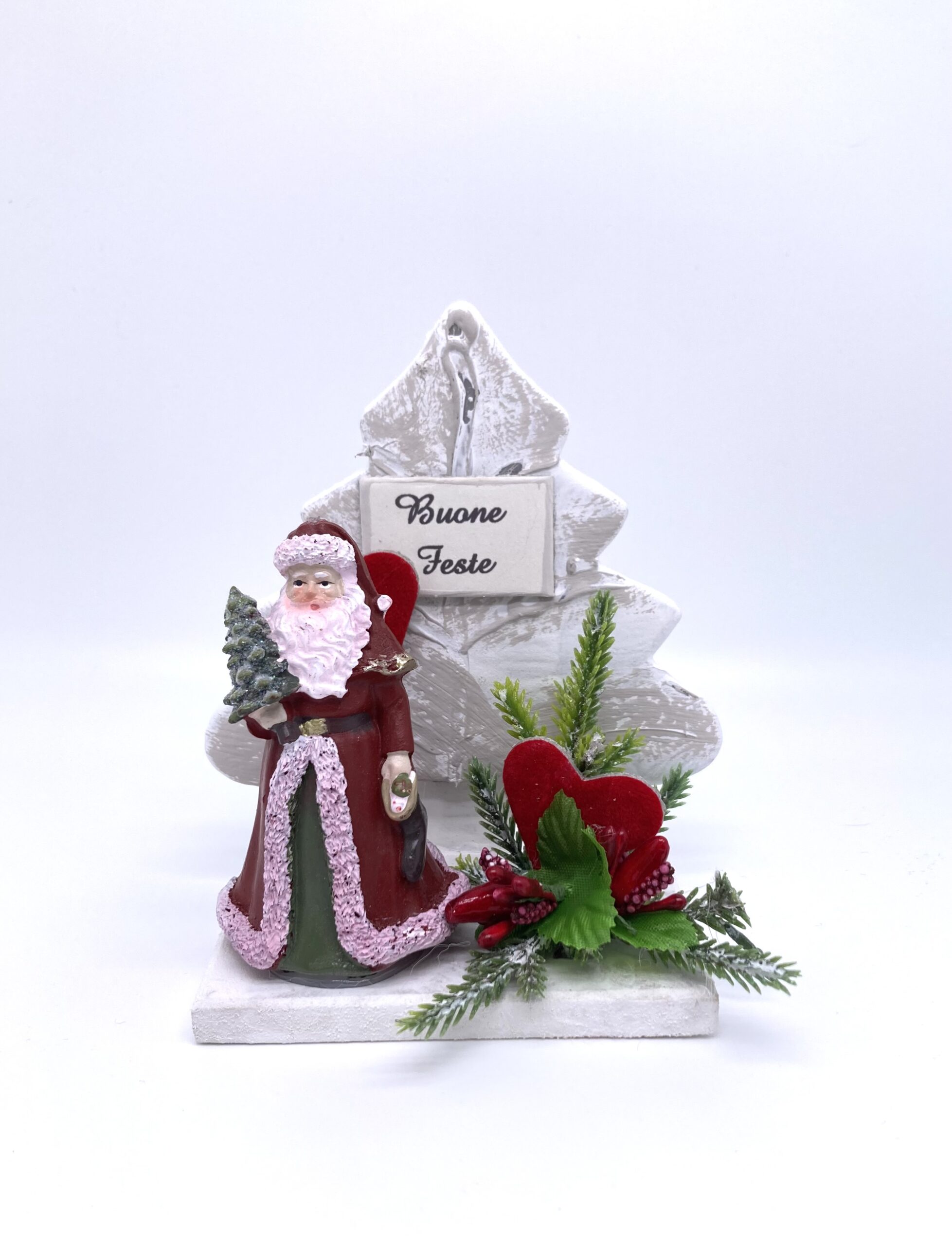 Albero di Natale con Babbo Natale, puoi trovarlo con due scritte: Buone Feste e Auguri. Articolo artigianale interamente fatto a mano, è stato realizzato con tanta passione e creatività.
