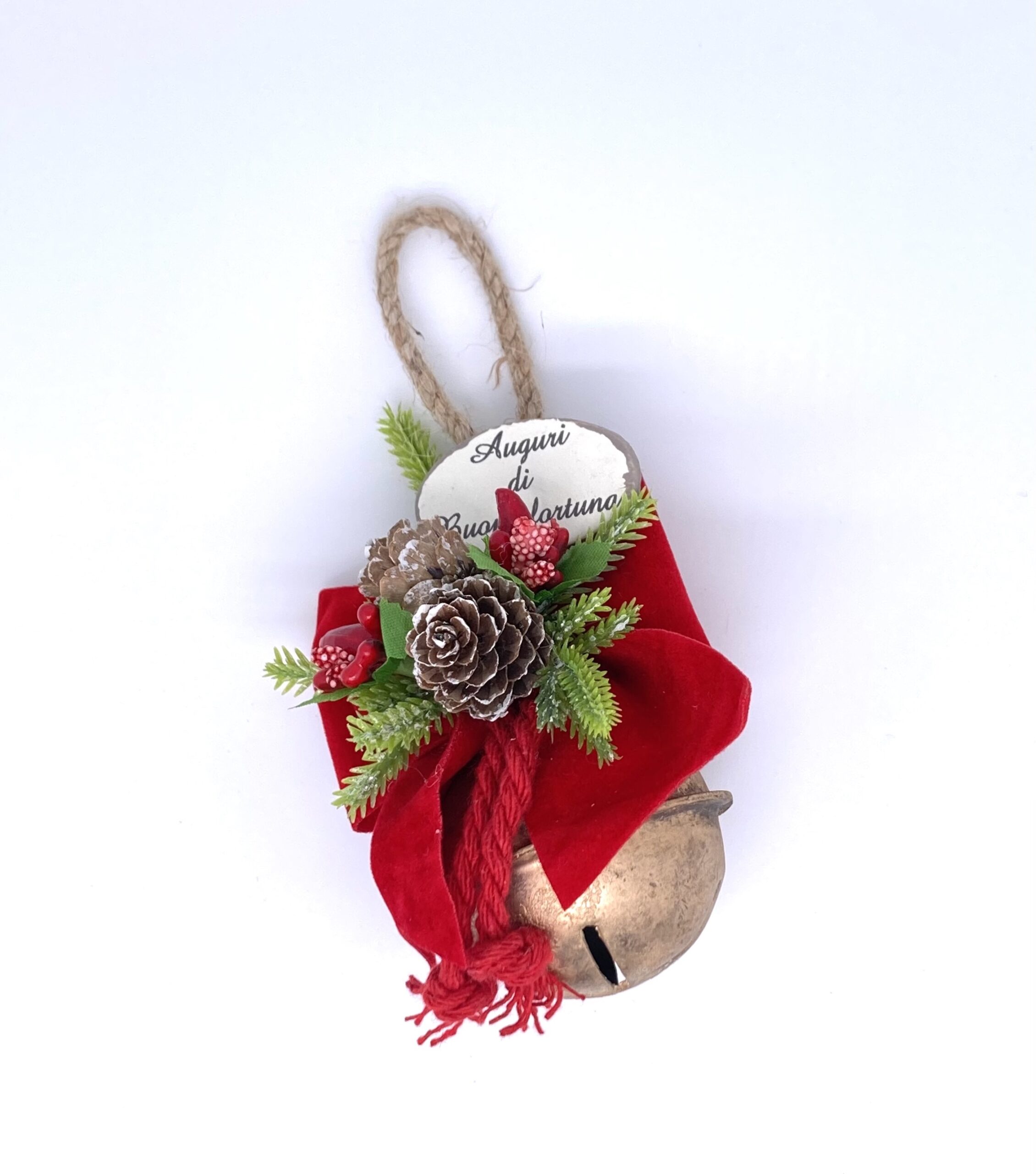 Campana di Natale con la scritta: “Auguri di Buona Fortuna”. Articolo interamente fatto a mano con tanta passione e creatività.
