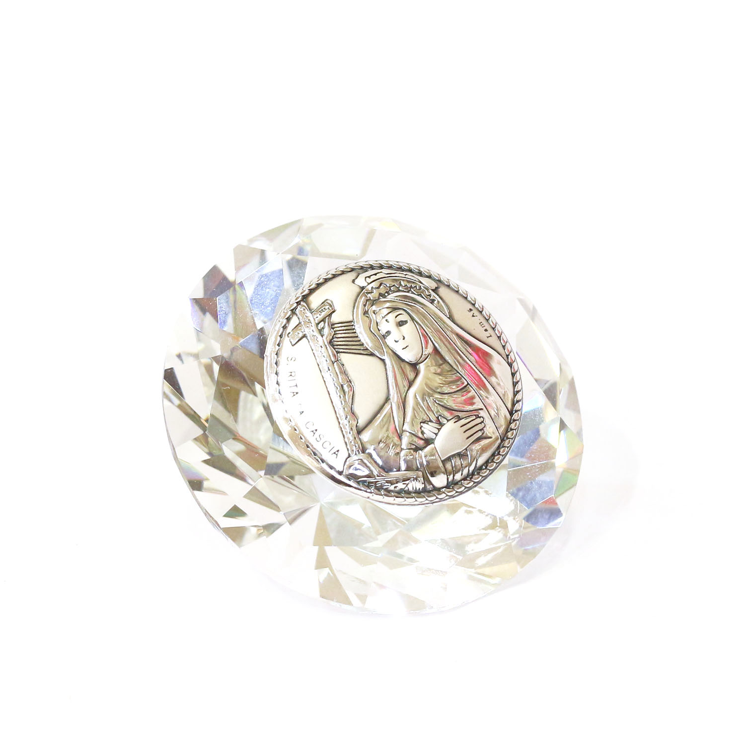 Cristallo con placca di Santa Rita.