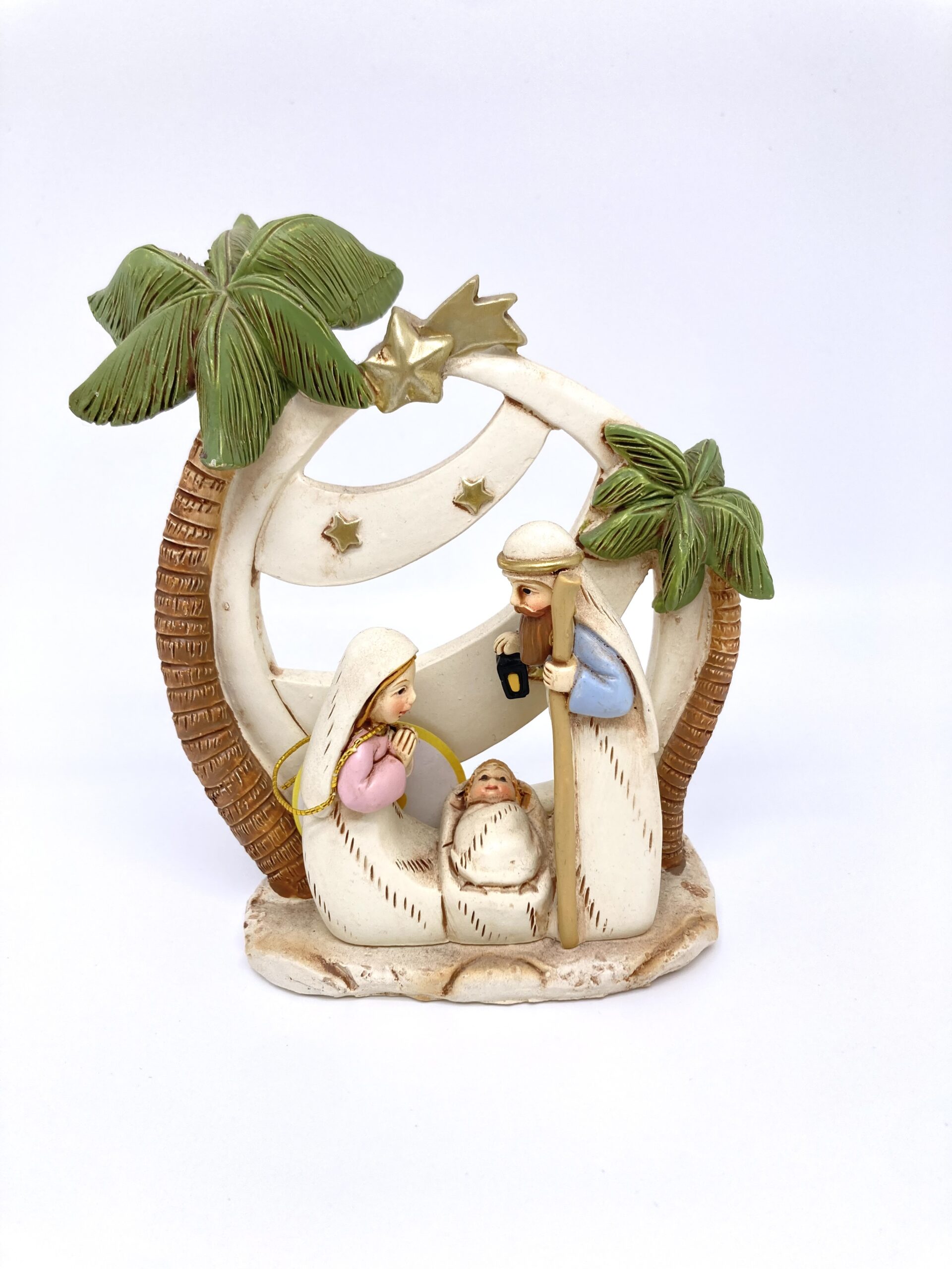 Presepe di Natale con due palme, articolo pitturato a mano.