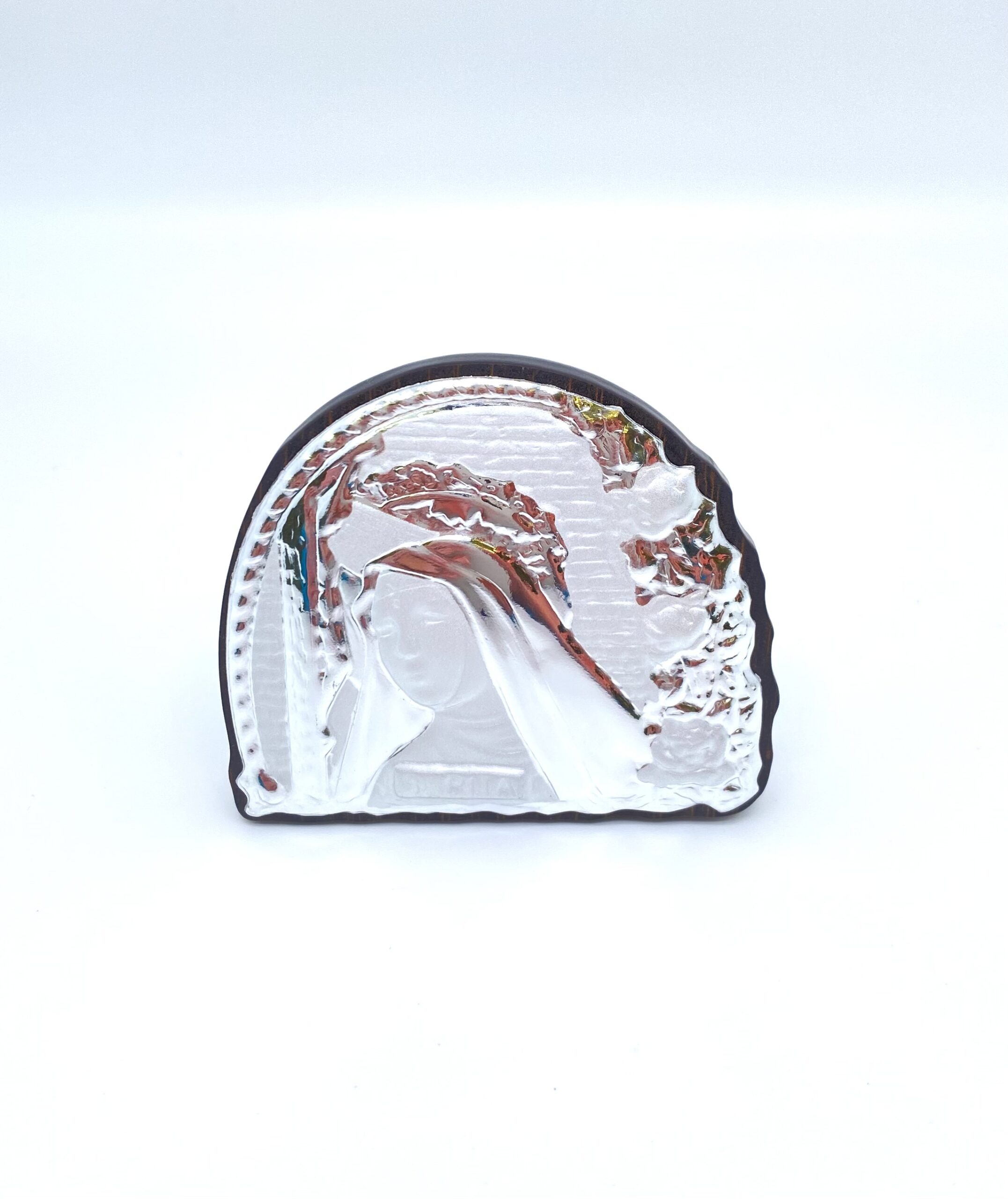 Quadretto in Argento 925 a forma di mezza luna. Il quadretto dietro è in legno.