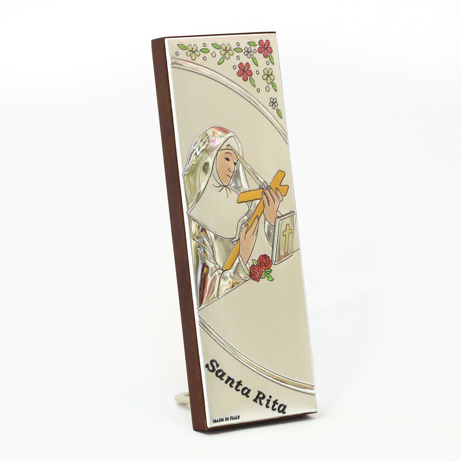 Quadretto in legno con placca di Santa Rita, si può sia appoggiare che appendere