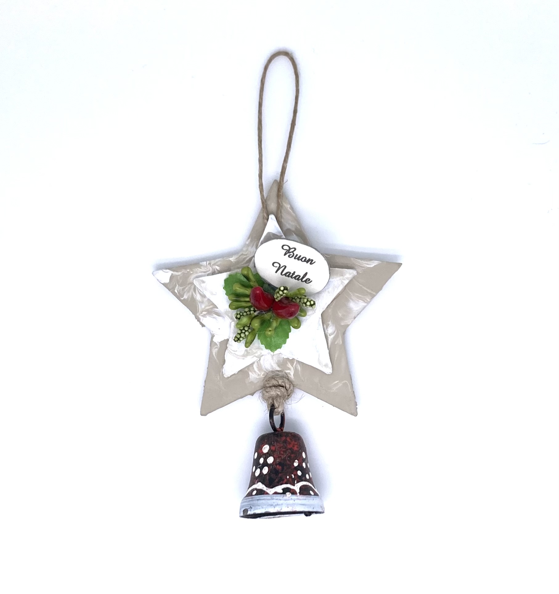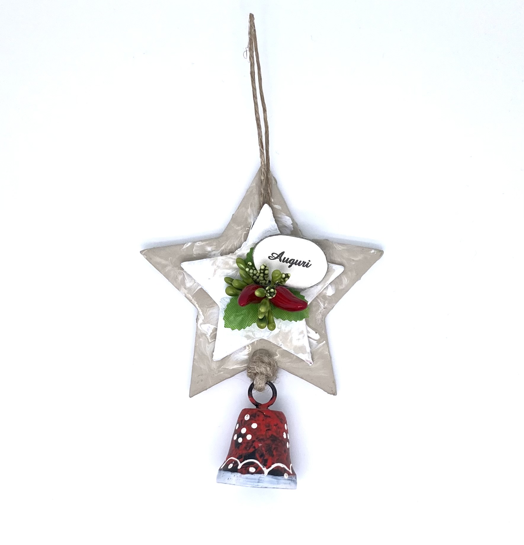 Stella di Natale con la Campana, puoi trovarla in due varianti: con la scritta Buon Natale e Auguri. Articolo interamente fatto a mano con tanta passione e fantasia.